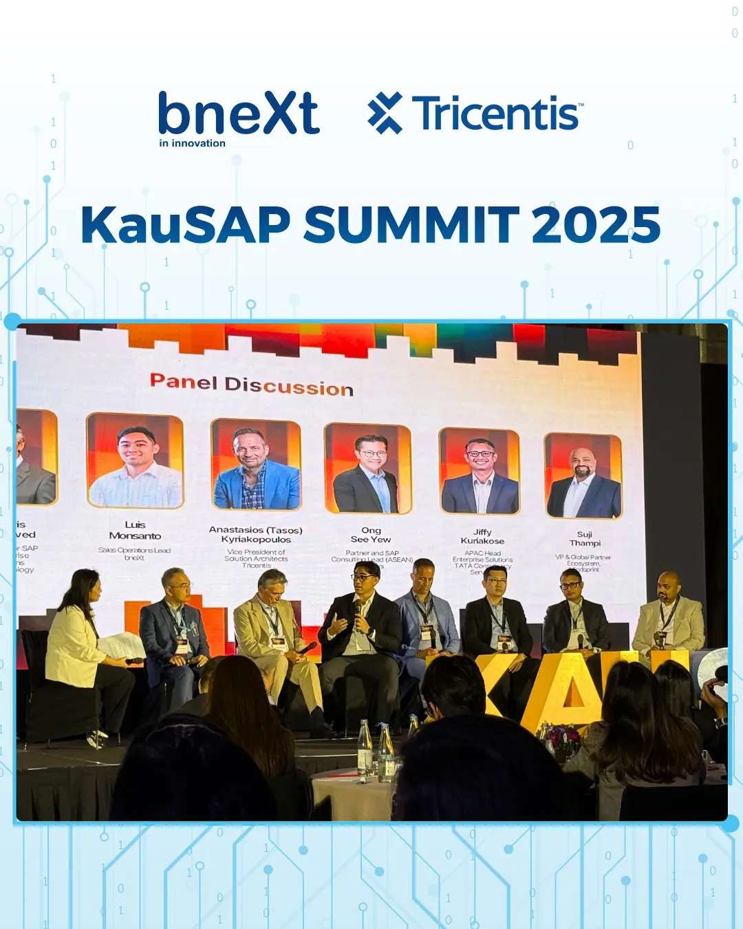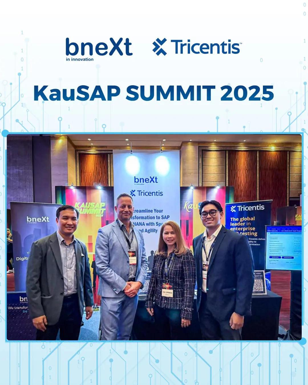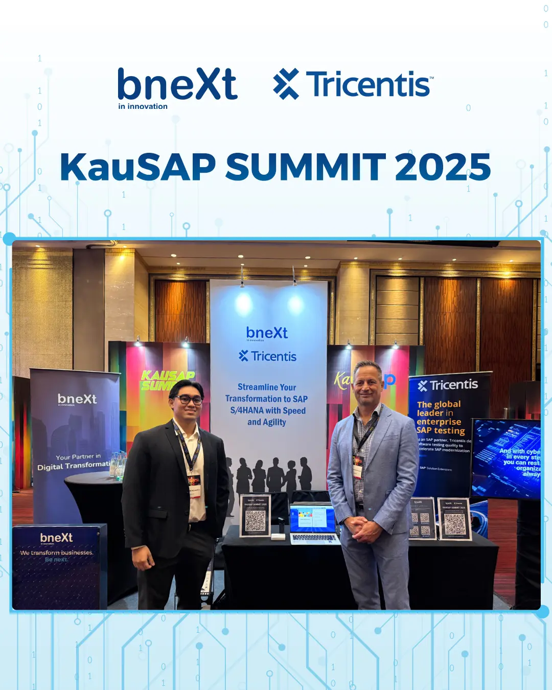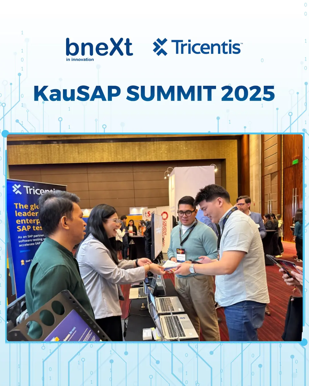 Showcasing the partnership and joint strengths of both organizations, bneXt and Tricentis came together as a unified unit during the KauSAP Summit 2025, a premier bi-annual gathering of the SAP community in the Philippines. The collaboration was highlighted by a joint presentation by Luis Monsanto, Sales Operations Lead of bneXt, and Anastasios “Tasos” Kyriakopoulos, Vice President of Solution Architects at Tricentis, where they shared a unified message about transforming with speed and agility and how it is no longer optional, but is an integral part of any S/4 HANA transformation initiative.
